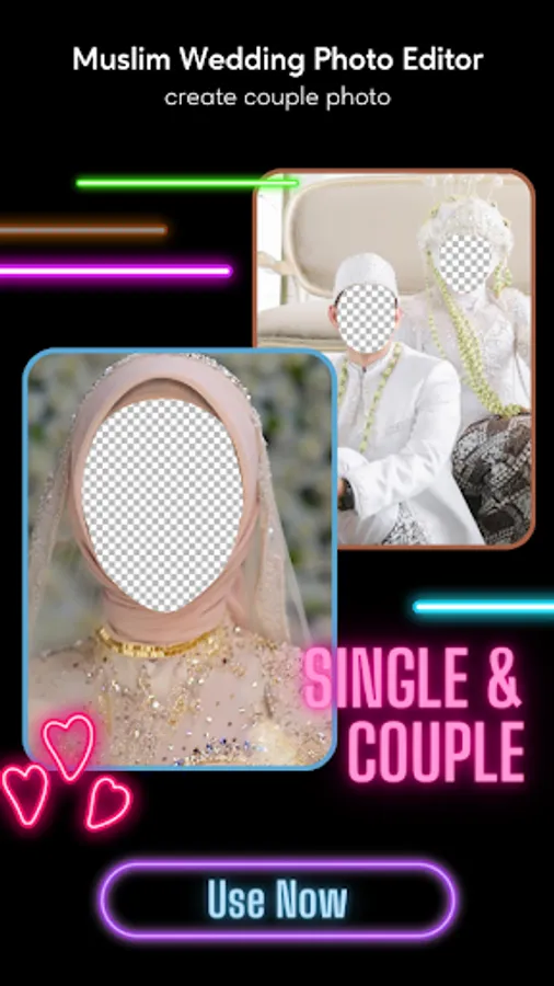 Muslim couples are now able to choose their very own wedding photo editor. There are many different types of hijab photo editors and wedding dress photo editors to choose from. This enables Muslim couples to have beautiful, stylish photos that represent their religion and culture. Many Muslim brides choose to wear hijabs in their wedding photos, and now there are special hijab photo editors available to help them look their best. There are also many different beauty couple editors that can be used to make the bride and groom look extra stunning in their wedding photos. Couple photo frames can also be used to add a special touch to your romantic photos.