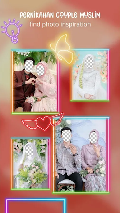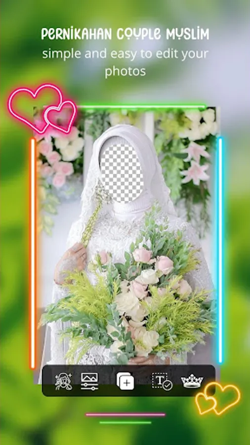 The Muslim Couple Wedding application is suitable for Muslim couples who are planning a wedding. With this app, they can easily create attractive wedding invitations and photo edits. In addition, this application can also assist them in choosing appropriate traditional clothing, such as brocade tunics or modern kebaya. Users can also use this application to make photo edits suitable for invitations or weddings.