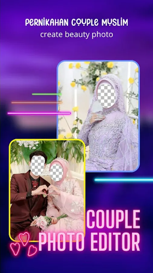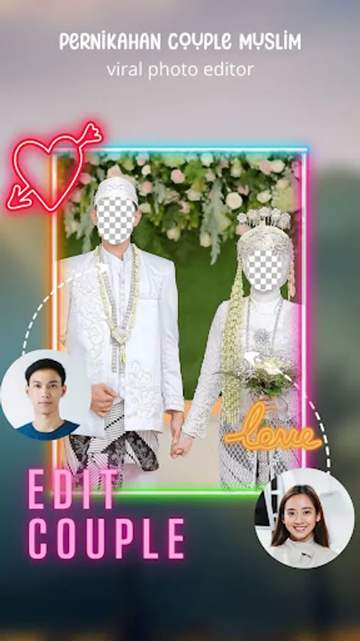 Muslim Couple Marriage is a photo editor application specifically designed to replace faces in photos of Muslim couples who are dating or about to get married. This application offers a variety of interesting features to produce elegant and modern wedding photo edits.
