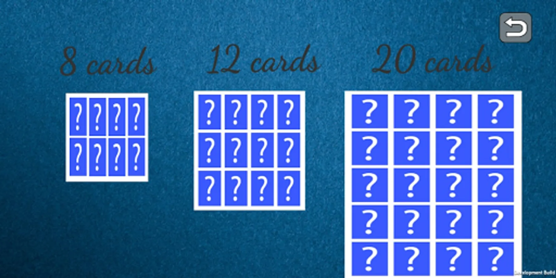 The game is very simple and similar to a traditional memory game with paper cards. The goal is to find the images that match. There are 3 levels of play: 8 cards, 12 cards and 20 cards. Play alone or with a friend, passing the turn to the next one when you don't find the right match. The player who has found the most pairs wins.