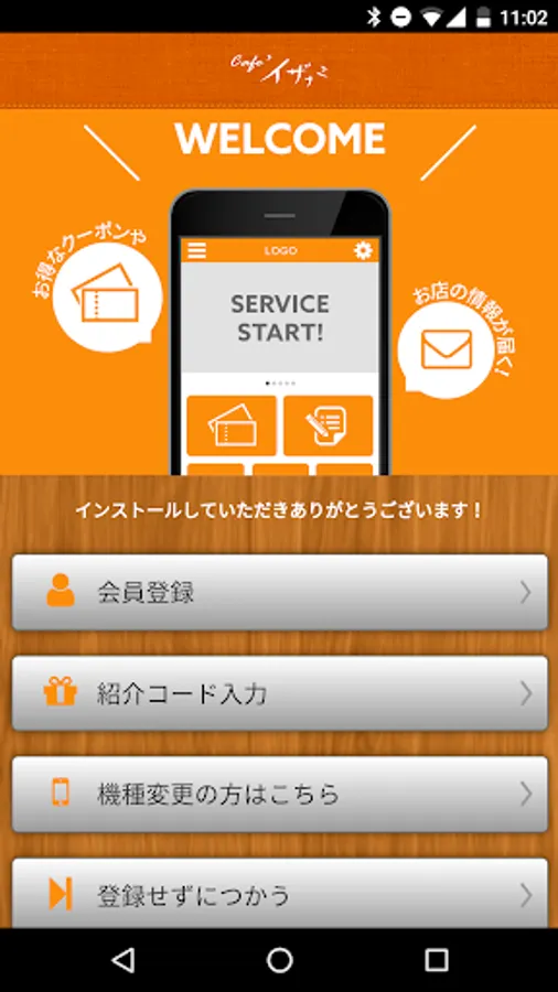 With this app, you can use to receive and useful features of the latest information of Cafe Izanami.