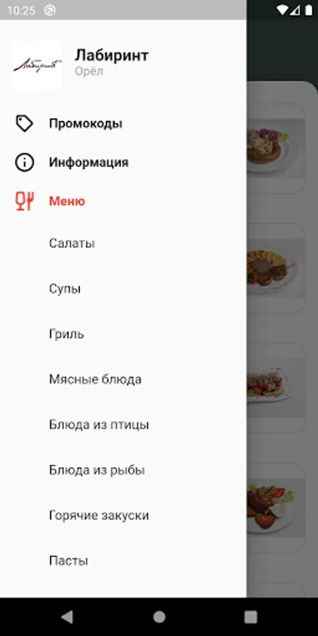 The official app of the Labyrinth cafe in Oryol.