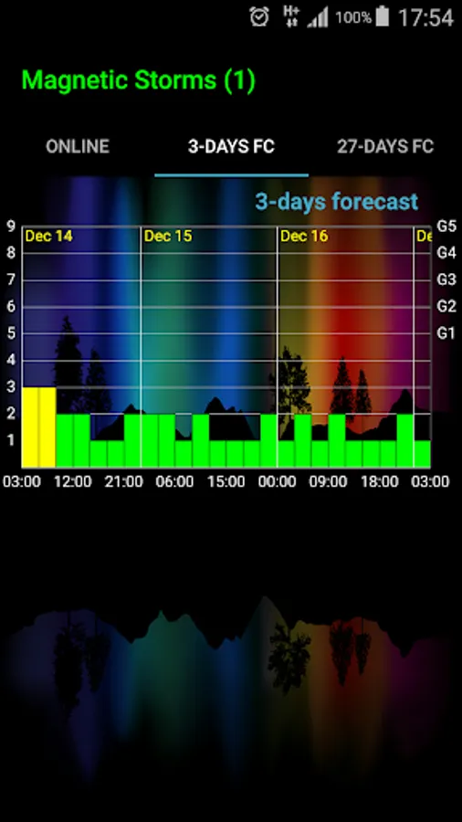 The application shows current geomagnetic and solar flare data. Also, you can find there three-day and twenty-seven-day geomagnetic storms forecasts.
