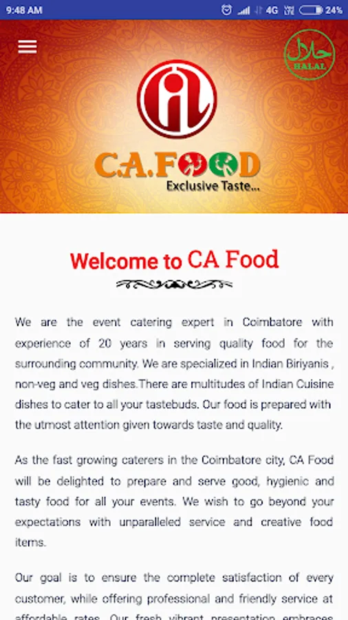 As the fast growing caterers in the Coimbatore city, CA Food will be delighted to prepare and serve good, hygienic and tasty food for all your events. We wish to go beyond your expectations with unparalleled service and creative food items.