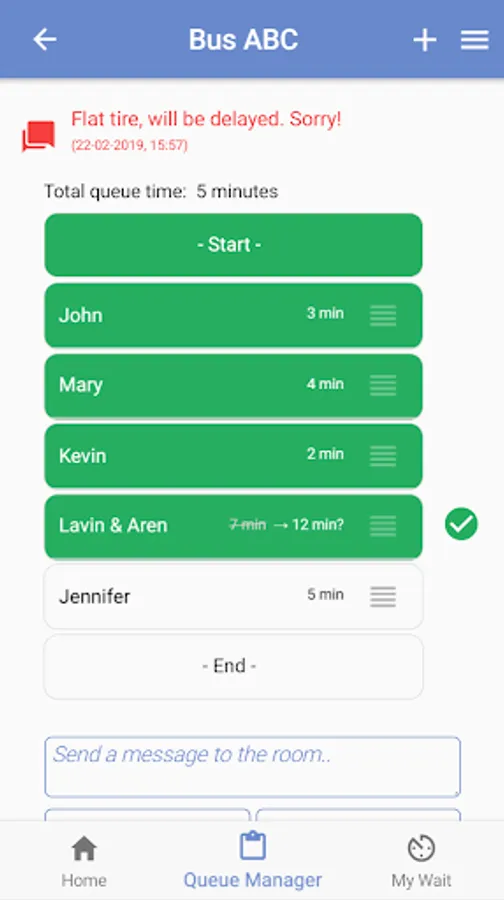 Simply download the app, create your room and start adding your customers to the list. Once your customers download the app and join your room, they will be able to see the queue status in real time and get notified when their turn comes.