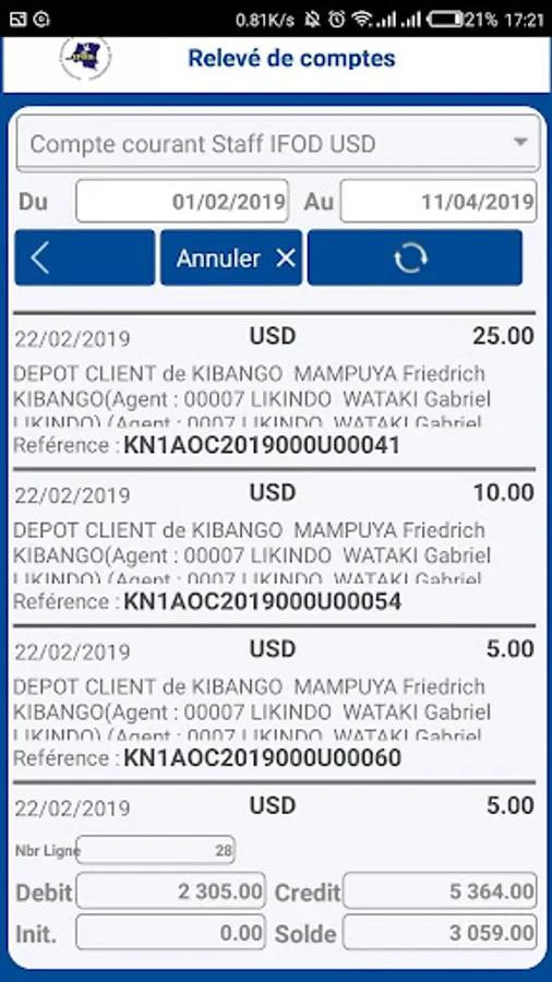 - Account statement
