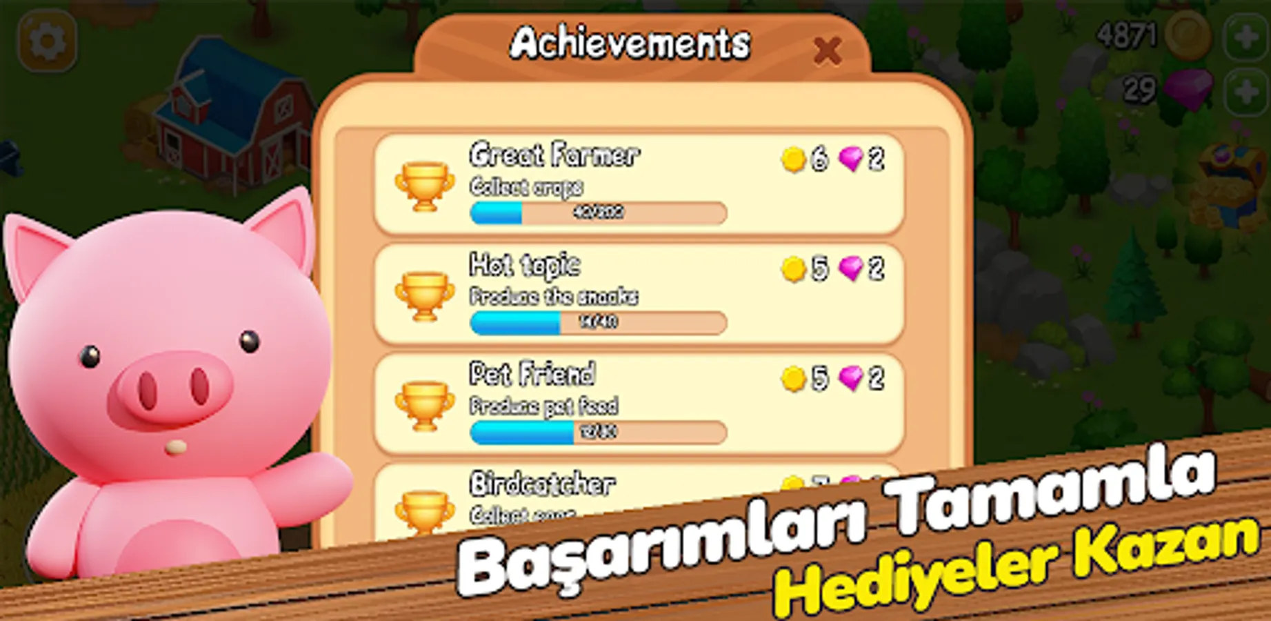 In-game achievements offer you the opportunity to develop your farm further. Earn rewards to acquire new equipment and boost productivity. By selling your own harvested products, you can earn in-game currency and expand your farm even more.
