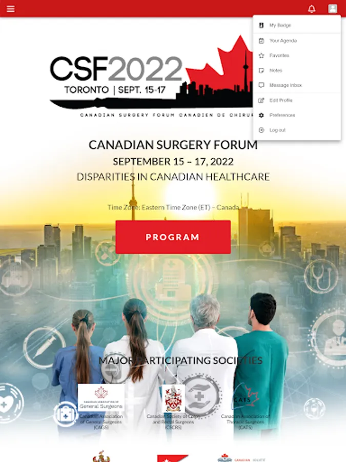 The Canadian Surgery Forum (CSF), occurring September 14 – 17, 2022 in Toronto, Ontario, is the largest surgical meeting in Canada. The 2022 conference theme is Disparities in Canadian Healthcare The CSF will bring together over 800+ delegates from across Canada – over 80% are general surgeons. The CSF partners with six major surgical societies and a variety of other societies to deliver a world class scientific program through a variety of educational formats. Tracks include general surgery, colorectal, hepato-pancreatico-biliary, hernia, trauma/acute care, surgical oncology, MIS/endoscopy, thoracic, rural/community surgery, and a track for resident/medical students. The 2022 programming includes keynote speakers, panel discussions, debates, symposia, paper and e-poster presentations, professor round tables and postgraduate courses. Do you like friendly competition? Check out the Laparoscopic Suturing and Surgical Robotic Competitions. It is not all serious! The CSF is pleased to be back in person with an exhibit hall and plenty of in-person networking opportunities for all – including the CSF Soiree Gala at Ripley’s Aquarium of Canada. MAJOR PARTICIPATING SOCIETIES: Canadian Association of General Surgeons (CAGS) Canadian Society of Colon and Rectal Surgeons (CSCRS) Canadian Association of Thoracic Surgeons (CATS) Canadian Society of Surgical Oncology (CSSO) Canadian Hepato-Pancreato-Biliary Association (CHPBA) Canadian Hernia Society (CHS) OTHER PARTICIPATING SOCIETIES: Trauma Association of Canada (TAC) Canadian Obesity Network (CON) Canadian Association of Bariatric Physicians and Surgeons of Canada (CABPS) The Ontario Association of General Surgeons (OAGS)