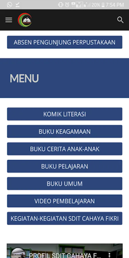 Contains information and learning at SDIT Cahaya Fikri Bontang. Students can learn through this application because it provides classroom learning materials, wall magazine, digital library, and the Koran. Students can also visit social media FB and YT Cahaya Fikri