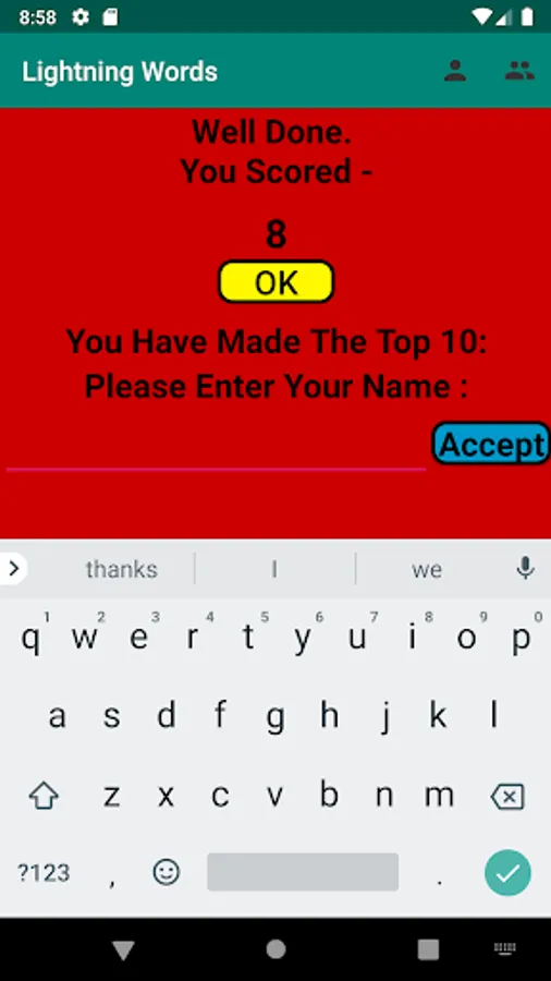 Guess as many words as you can within 1 minute from a grid of 16 randomly selected characters. Containing a dictionary of over 400,000 words including words, abbreviations and acronyms plus more.