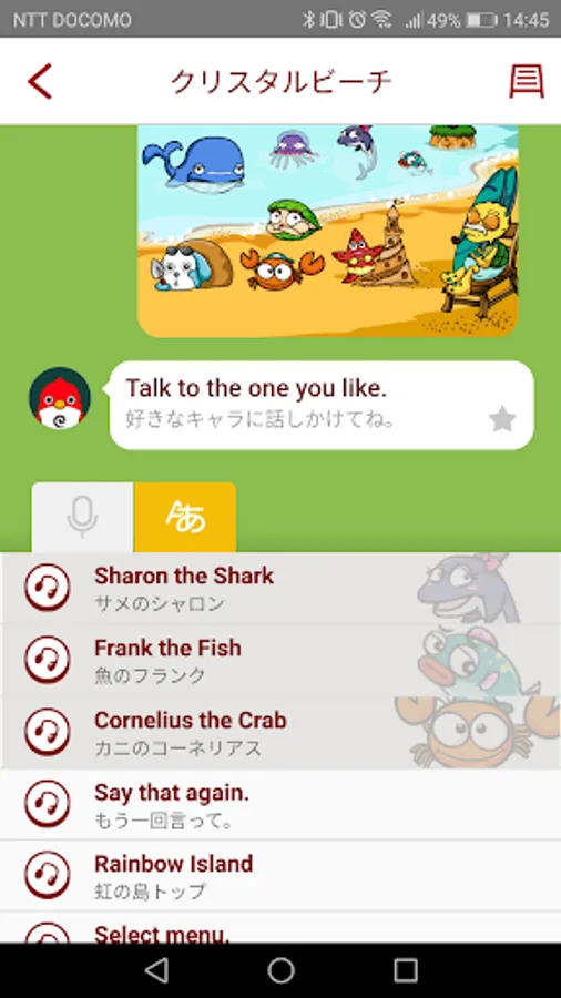 Check Chirpy's chatter (Japanese translation ON/OFF possible)
