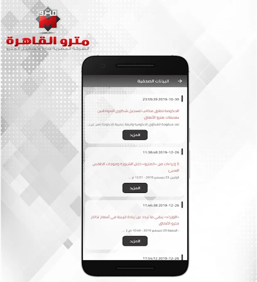In light of the state's plan for the digital transformation of government agencies and their subsidiaries and the ease of communication with citizens, the Egyptian Company for Metro Management and Operation offers this application to be in line with modern technology to become more interactive and accessible to the public by providing many services.