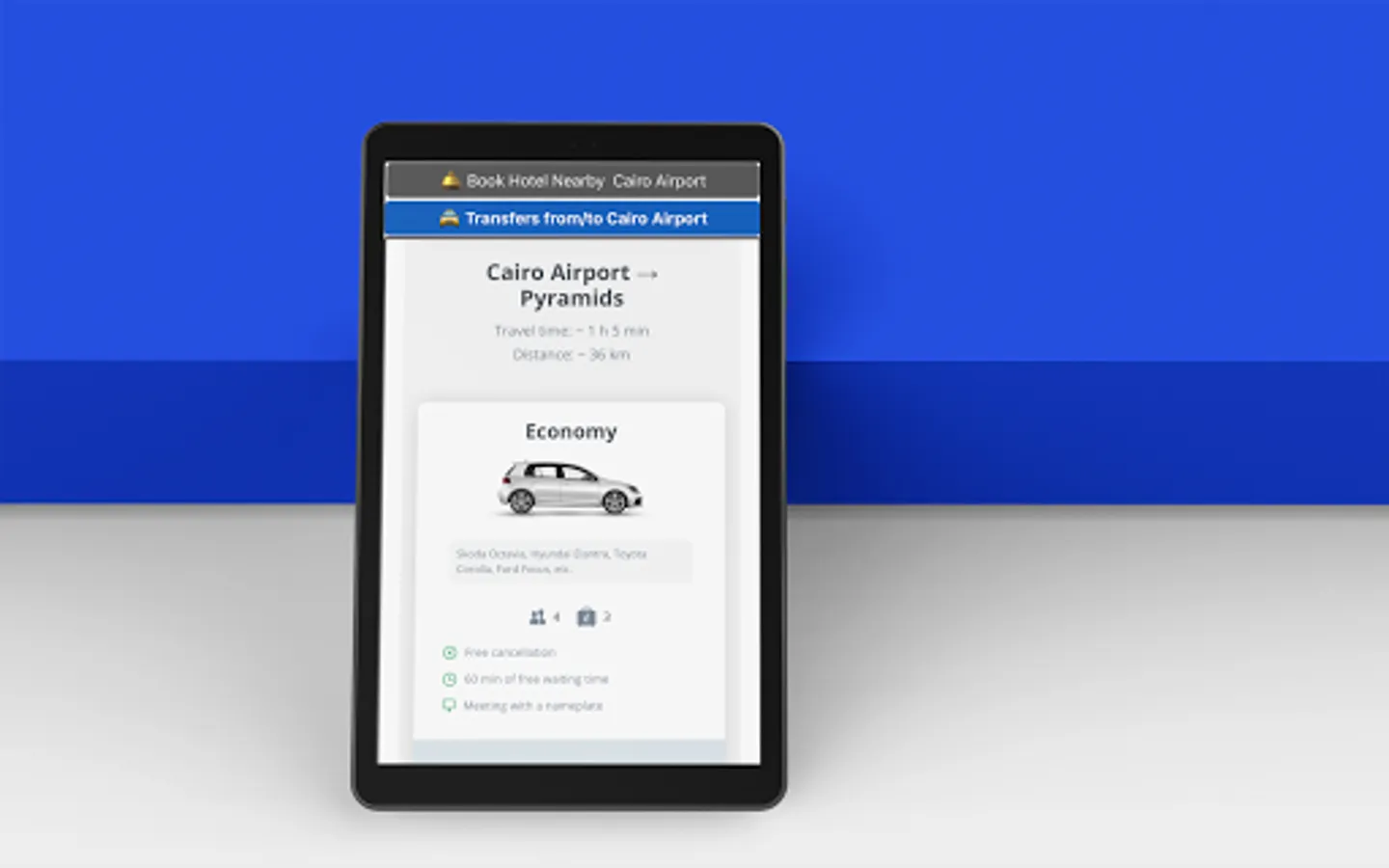 Cairo airport Taxi app is a transportation service which meets and brings you exactly where you asked: a Taxi driver meets you at Egypt Cairo Airport Taxit (as close to the Arrivals as possible), at the hotel reception or at the exactly given address, helps you with your luggage and brings you to fast- track to your destination.