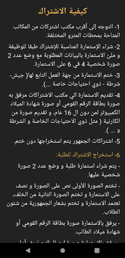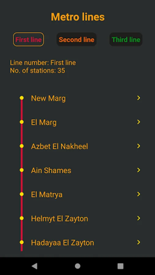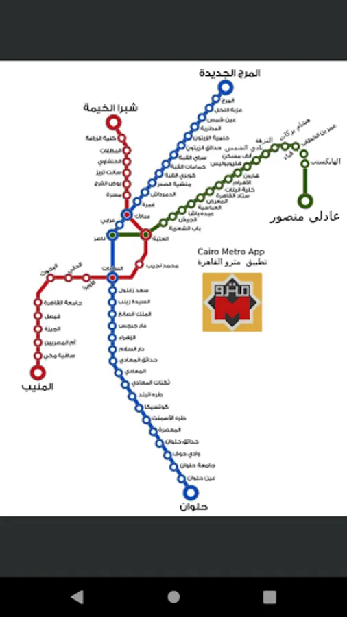 * يزودك التطبيق بمعلومات عن خطوط المترو و عدد المحطات بكل خط.