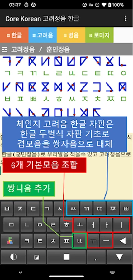 고려정음체인지한글자판과현대한글자판의차이점은한글자판의결합모음키를제하고, 삭제된결합모음 을대체하기위해한글자판을더블큱릭하나쉬프트국어야만입력할수있는이중자음을추가한것이다. 나외국어에서흔히쓰이는F발음이나현대한국어에는없는글자를플랫한글F(ㅥ)로대체합니다.