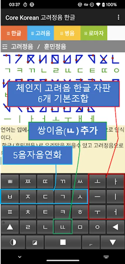 The difference between Goryeo-cut sound and modern Korean input method is the addition of F(ㅥ)nn consonant letters and diphthong h(ㅎ) alternative phonetic scheme, which is completely consistent with modern Korean.