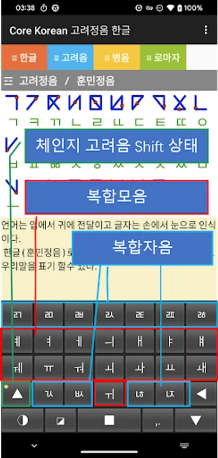 The diphthongs of Chinese characters that cannot be phonetically represented in modern Korean, in the Korean input method of Goliyin Qieyin, use the combination of the first vowel in the diphthong and the heel (ㅎ) in Korean to solve the phonetic problem.
