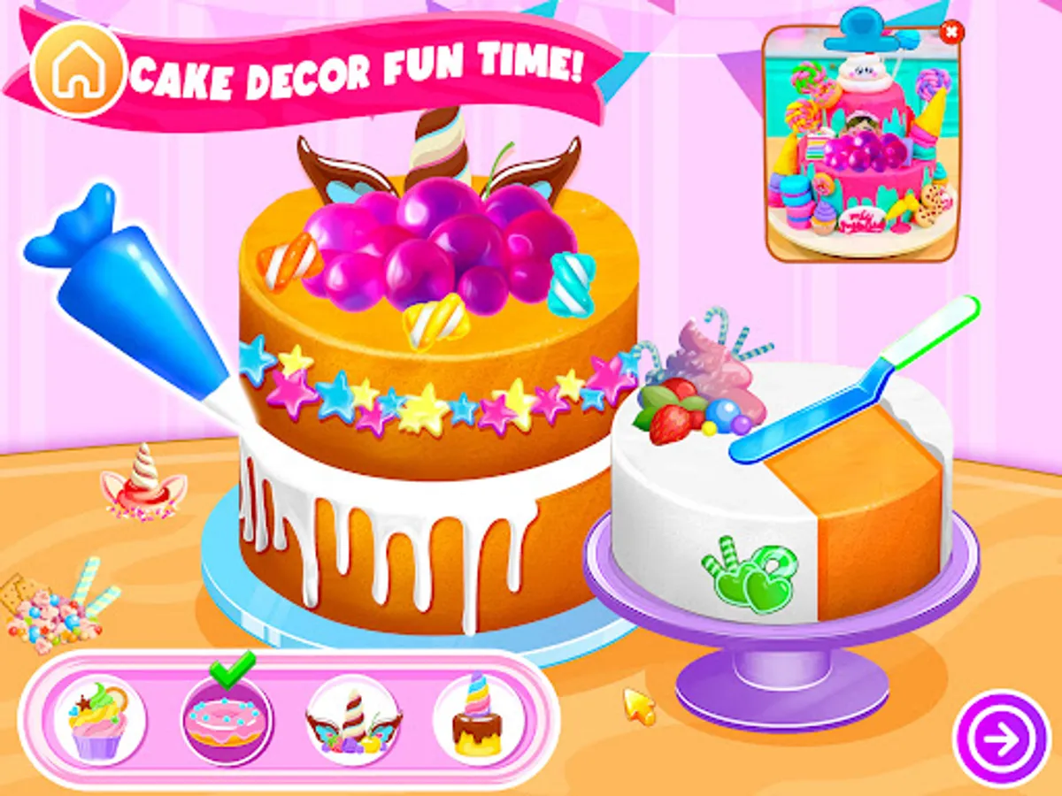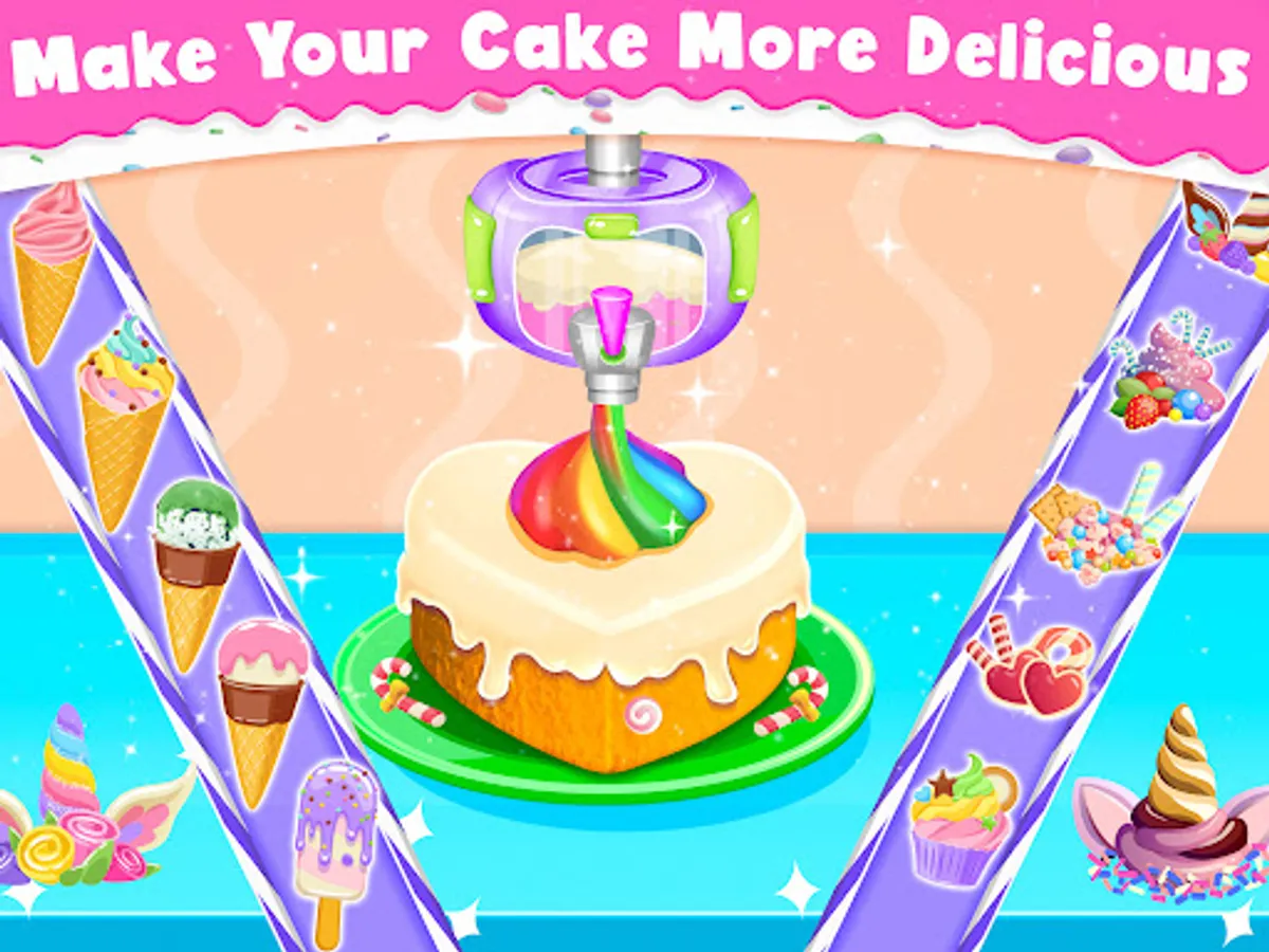 You can choose from numerous cake shapes with different fillings, create one or two storey cakes with different dressings, so you can choose whether you want to make a formal wedding cake, fancy birthday cake, Berry cake, King cake, Queen cake, a party cake or many more real cake in this sweet cake maker game. Start with cracking the eggs in the bowl and shake to mix it. Add some flour and mix it well with water. Simply just bake it and start the decoration of cake making for various occasions with multiple flavors like Vanilla, add marzipan decorations, fresh fruits, candy, Chocolate, Butter Pecan, Eggnog, Strawberry and cream. Sprinkle it with crumbs, put on some candles and add balloons to make it even more attractive. Balloons can be pop simple just tab on them