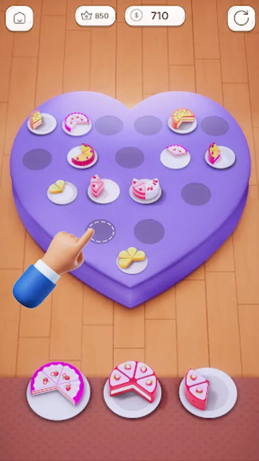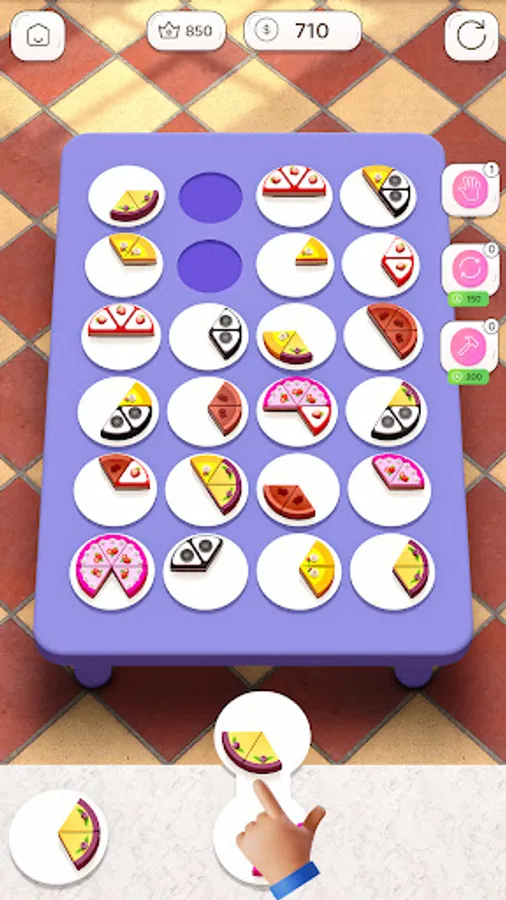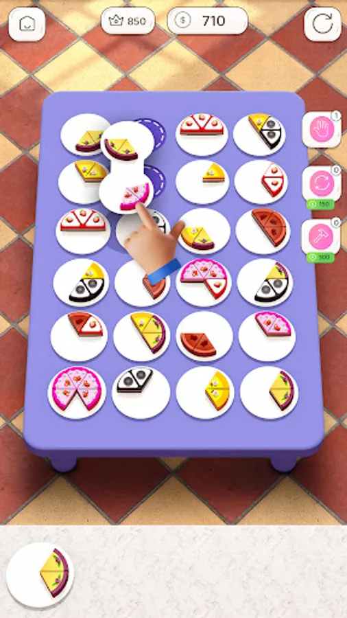 Welcome to Cake Sorting Puzzle Game, the most delicious cake match game on the market. In this game, you'll get to play the role of a cake pie chef, decorate amazing cakes on the table, and match the right ones. To do that, you'll need to color sort the cake layers by color and type, matching six of the same kind to clear them off the board.