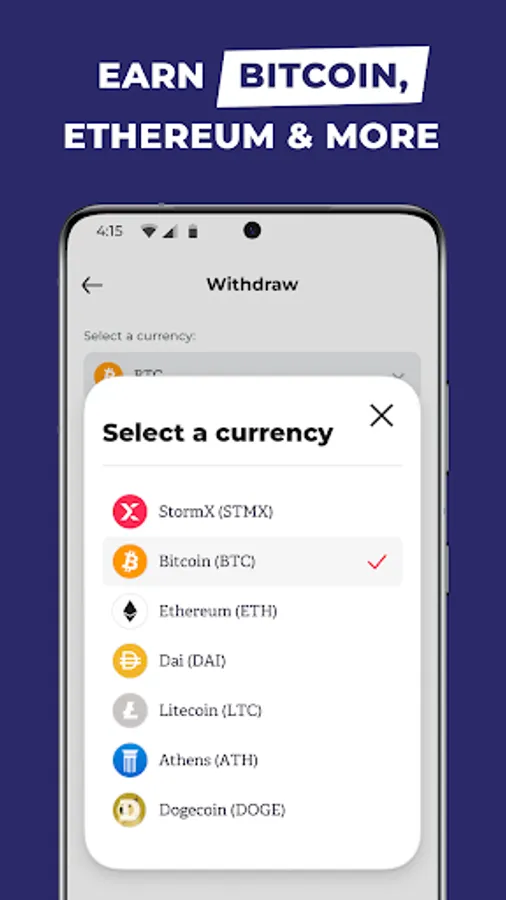 Shop and earn crypto rewards then withdraw in the cryptocurrency of your choice: