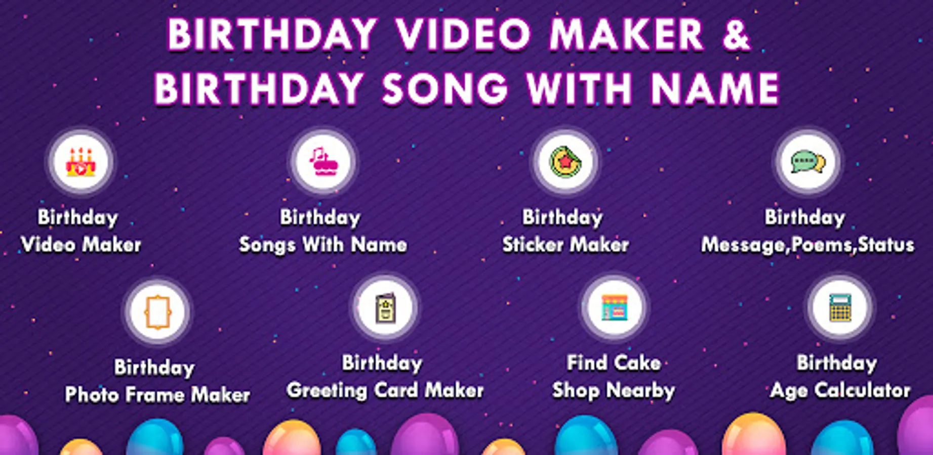 Happy Birthday Song With Name & Birthday Video Maker - Bday App BUNDLE OF 13 HAPPY BIRTHDAY APPS Like Birthday Song With Name, Birthday Video Maker, Happy Birthday Song, Birthday Photo Frame Maker, Birthday Greetings Card Maker, Birthday Stickers, Happy Birthday Messages, Birthday Wishes, Birthday Status Maker, Birthday Greetings With Name And Photo, Birthday Poems, Birthday Age Calculator, Find Cake Shop.