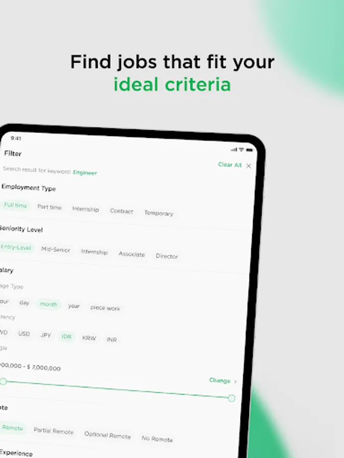 Discover your ideal job opportunity with keywords and filters. You can now search for specific job opportunities based on job type, region, level of expertise, and more.