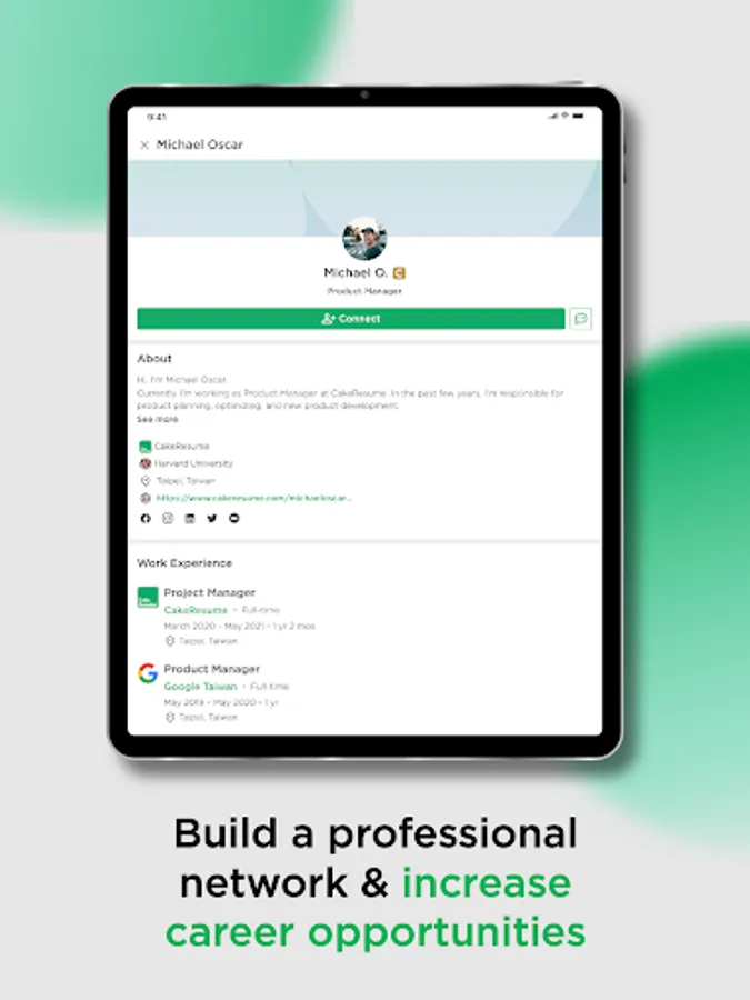 Discover job opportunities around the world and network with countless professionals easily with CakeResume.