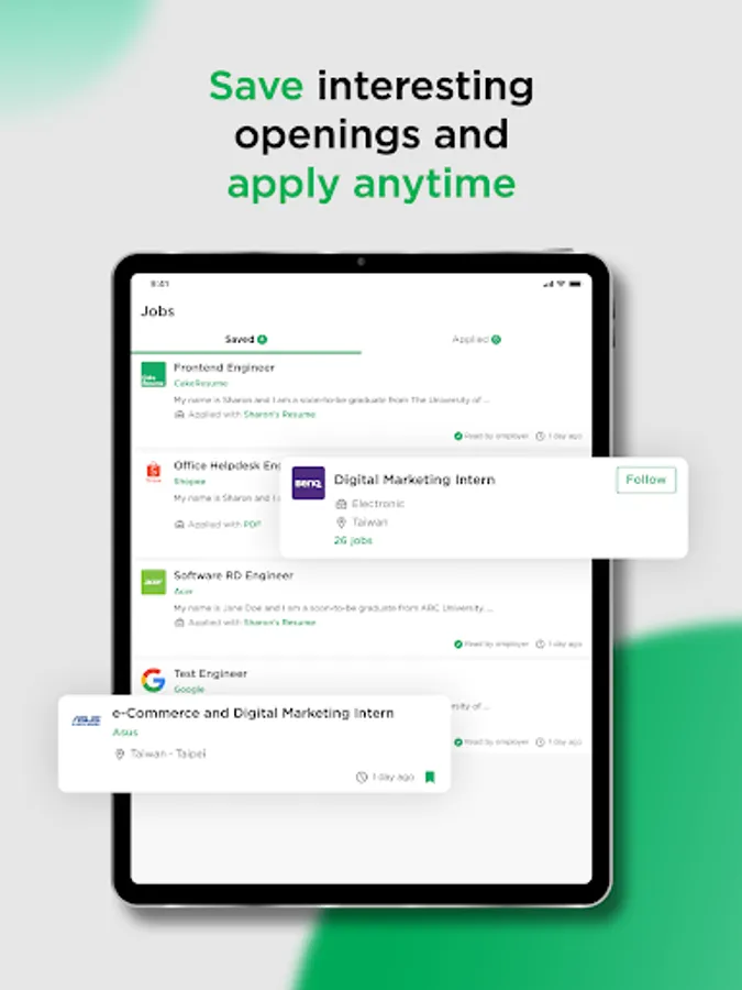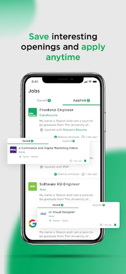 You can bookmark any job vacancy and follow any company. CakeResume will update you about the latest job openings and news in real time.