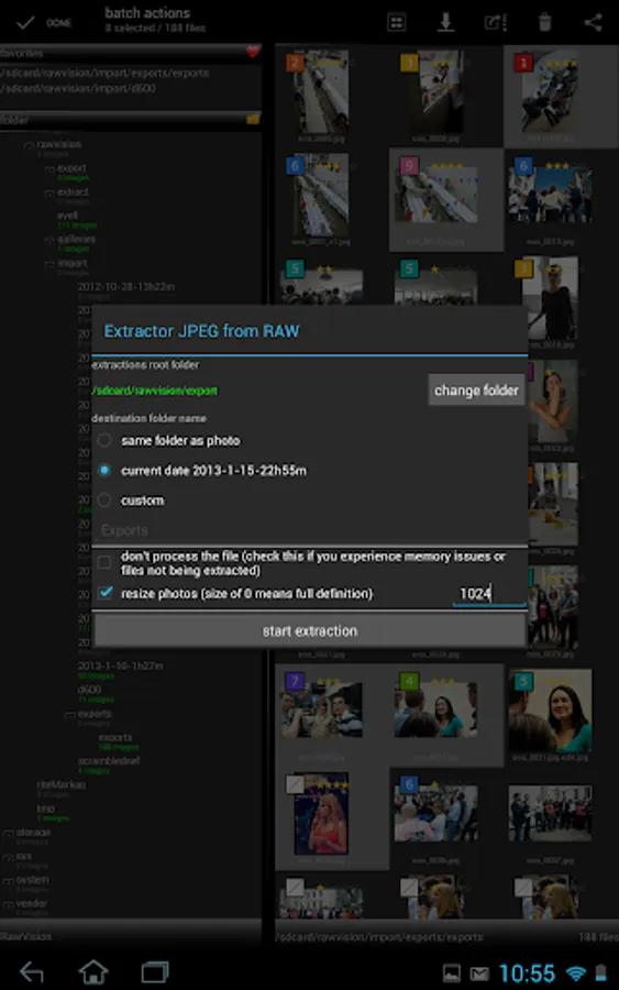 Extract a JPEG preview of the RAW files with resize and auto-rotate options.