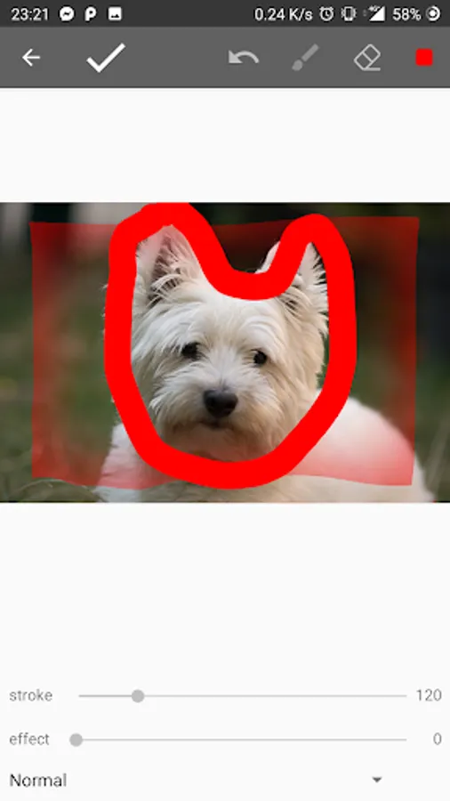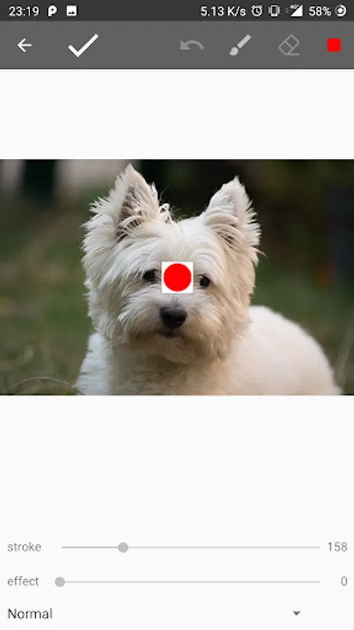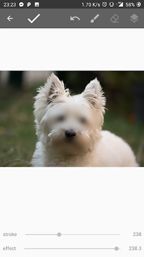 - blur of parts of image, application with finger-painting and rubber. Stroke size and strength of the effet are all adjustable.