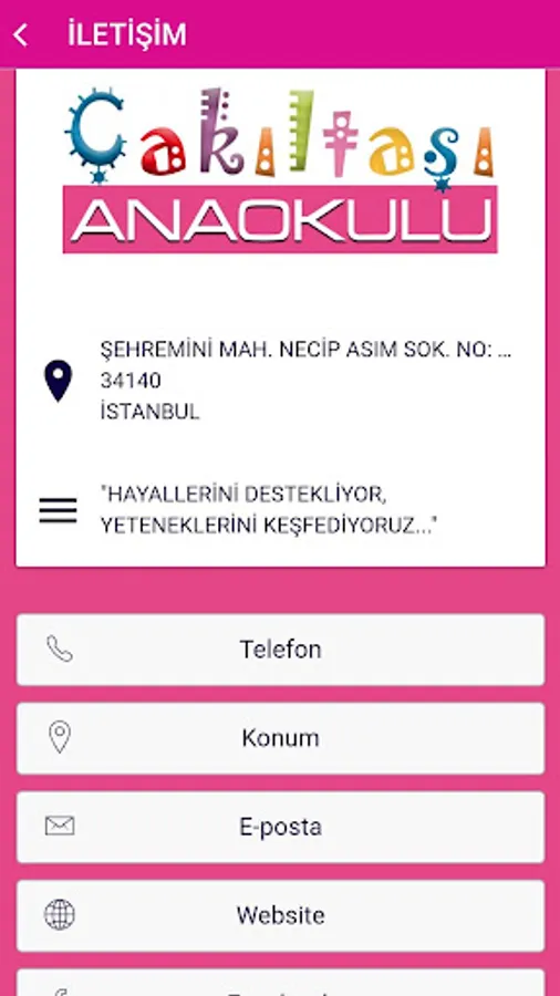 Students are admitted to our kindergarten primarily from the Fatih district of Istanbul, Çapa, Fındıkzade, Koca Mustafa Paşa and Şehremini. 2-storey detached, earthquake-resistant, fire protective and safety measures taken, and all departments renovated our building, the best the way to receive training in mind all the needs of our 2-5 year old children and care has been taken all the necessary details to allow them to feel safe, educational and play materials for the the best ones and natural ones are preferred and they can also have fun by playing games in healthy environments. Kitchen and dining hall are separate.