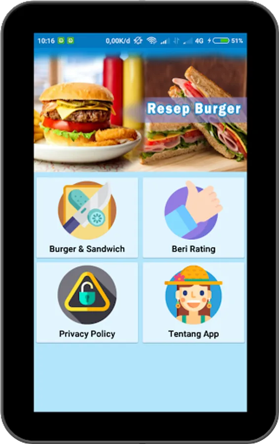 AYo for mothers or anyone who is looking for burger recipes and sanwich recipes this application is very suitable for use. What are you waiting for.
