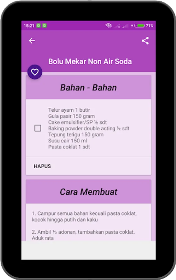 The application of Recipe for Pastries & Offline Wet Cakes is a collection of various kinds of recipe for pastries and various recipes of wet cakes which are very easy and certainly very complete. This application can be used without an internet connection (offline). In this application there are many choices of types of cakes.