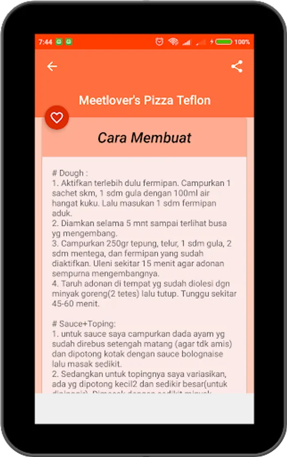 Pizza Recipe application is a collection of various kinds of pizza recipes that are very popular and can be used without an internet connection (offline).