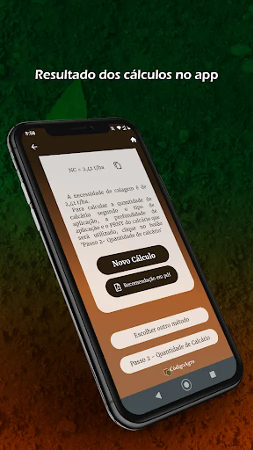 With the Calagem App you perform the calculations and generate a pdf recommendation that can be shared with your friends and customers via social networks and you still have the freebie 🎁 the fertigram module 🎁 for a more dynamic diagnosis of the state of Soil Fertility.