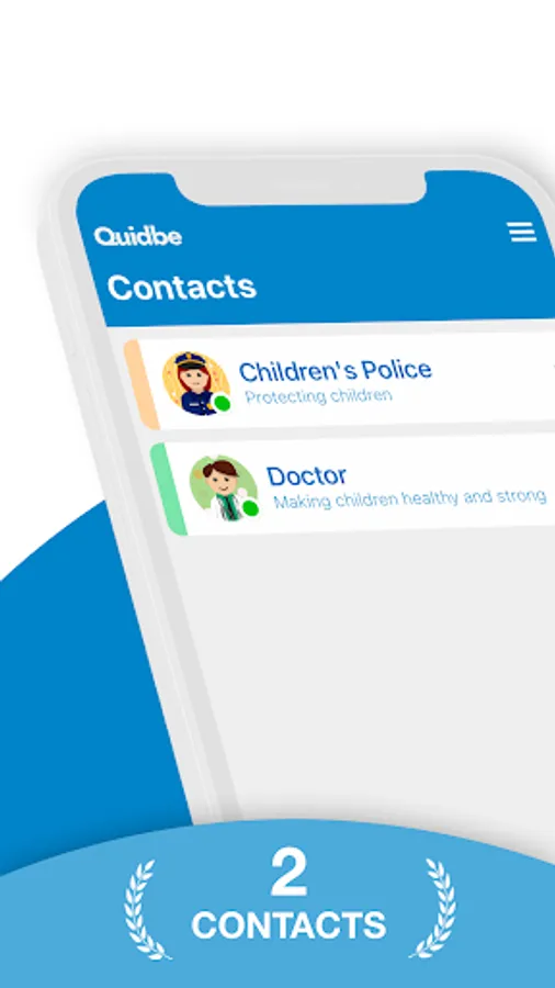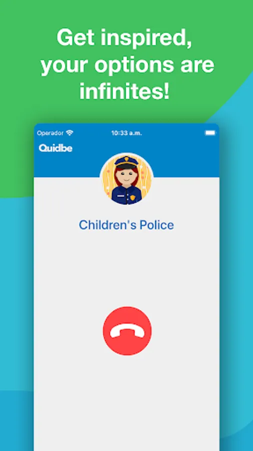 Quidbe reproduces pre-recorded audios to simulate a fake call to the children’s Police Station or the children’s Doctor. With that, you can report your little one’s behavior. Every audio has different dialogues! The reproduced audio’s dialogues will help you mention the motive for which you are simulating the fake call, having endless options.