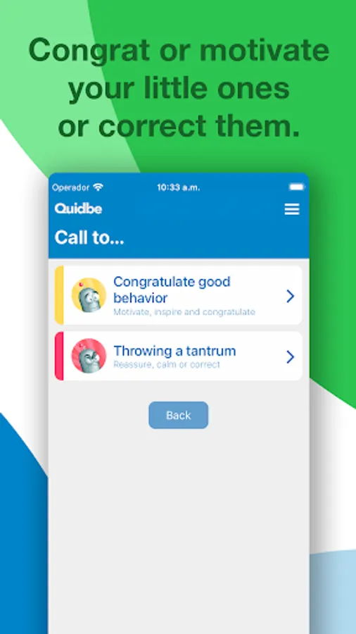 Many tantrums can be over with a simple distraction and Quidbe helps you create it. It can also seize the good moments to congratulate and encourage your little ones to keep going with their good behavior.