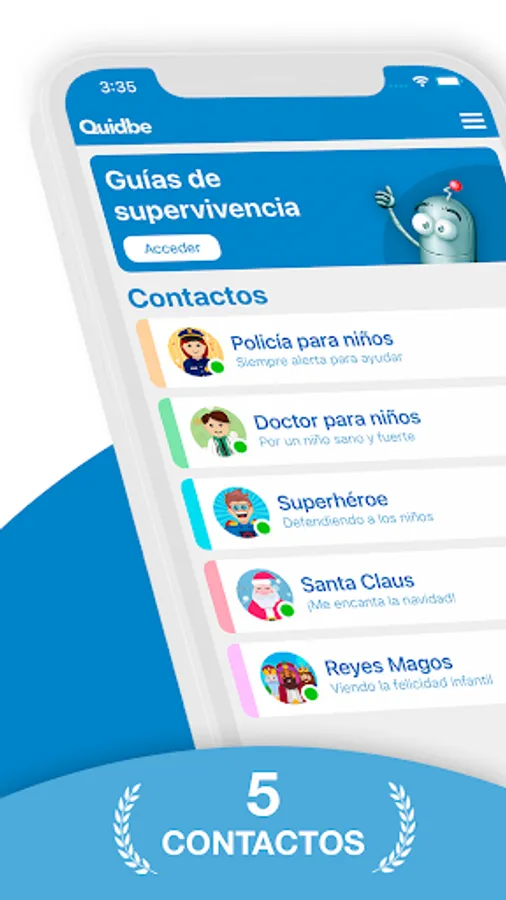 Quidbe plays pre-recorded audio to simulate a fake call to the Kids Police, Kids Doctor, Santa Claus, Three Wise Men or the Superhero! and thus report the behavior of your little ones. All the audios have different dialogues!