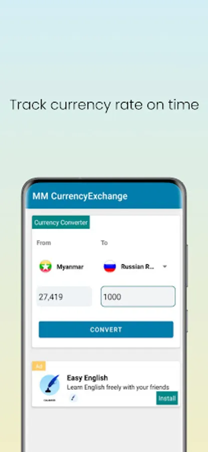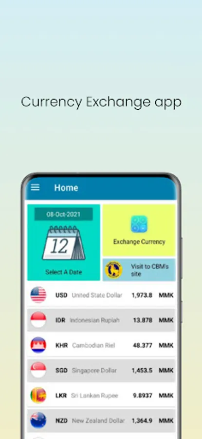 Track changing currency on time. Convert MMK to other currency and vise versa. You can select date and back to previous currency rates.