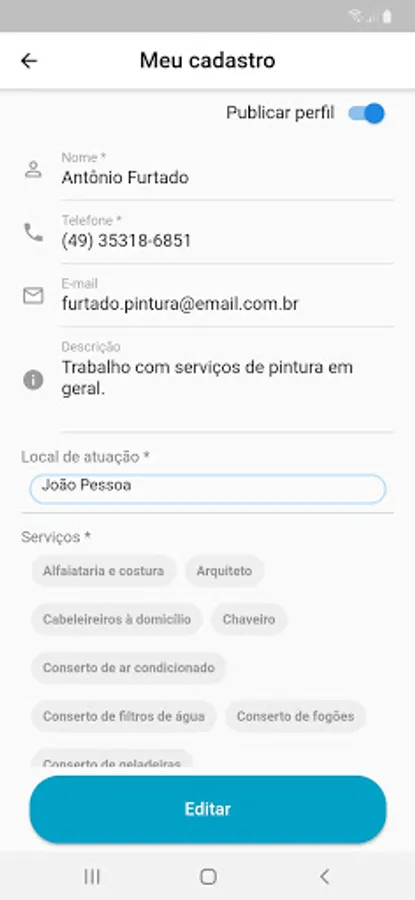 Find the most diverse types of service providers near you! Download the app now and search for the type of service you need, and we'll list the providers available in your city in Paraíba!