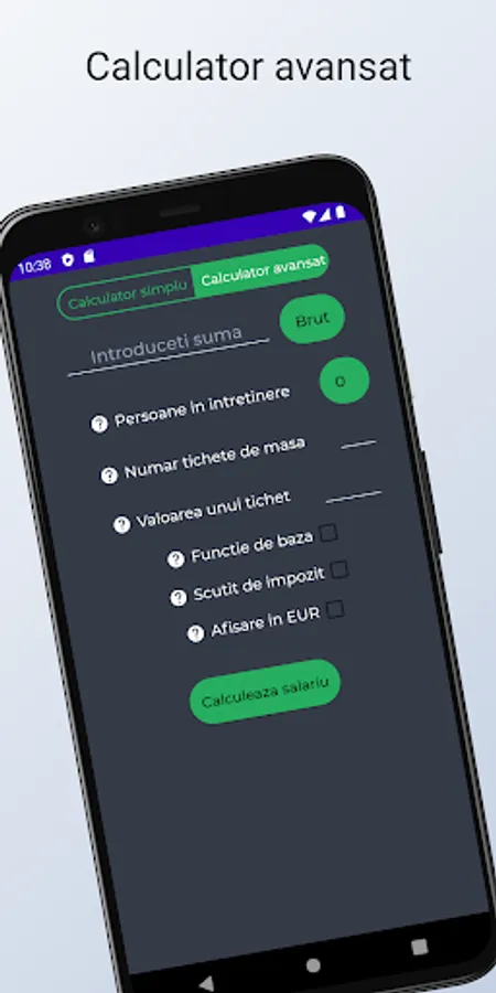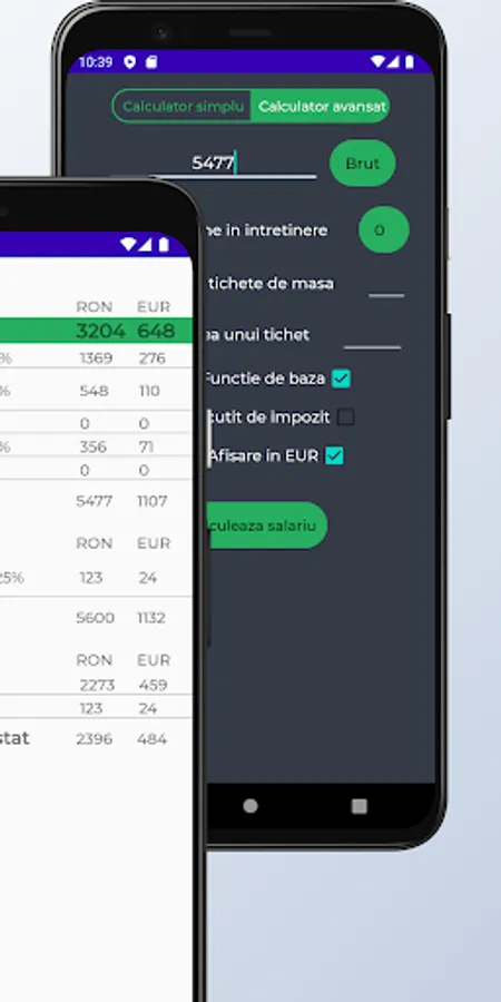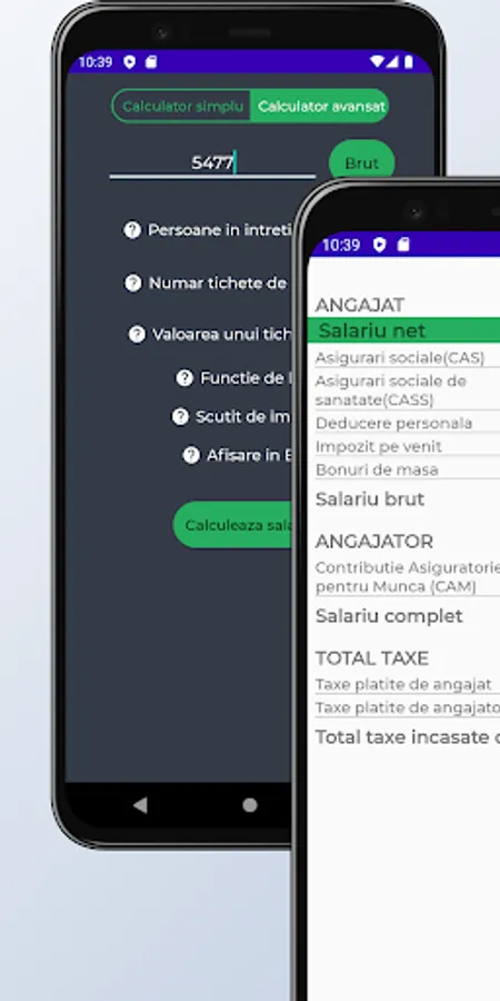 This application provides the user with a salary calculator, which allows the calculation of the gross and full salary, starting from the net salary, respectively the calculation of the net and full salary, starting from the gross salary.
