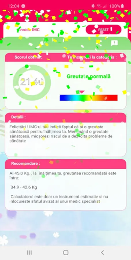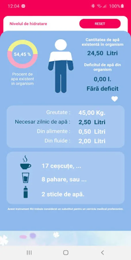 The application does not retain either the level or the external level, data or results, obtained from its use. SanoLife + is in no way a substitute for the opinion of the specialist doctor in the fields covered by the application functions, this being an exclusive prerogative reserved for doctors. Although the application is based on formulas provided by major universities around the world, currently used and considered established in the medical world, it can not provide data that can be considered exclusive and decisive in making medical decisions. SanoLife + is a warning device without being considered a medical device.