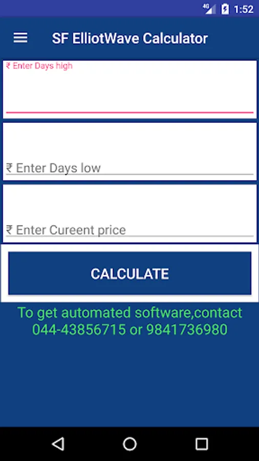 Elliot wave analysis consists of impulsive and corrective wave structure.However many traders think it is a complex analysis and difficult to follow.All Elliot waves are derived using Fibonacci ratio and a set of rules.We have decoded those principles and programmed in this calculator.By providing simple inputs you can now have the information on Elliot wave.
