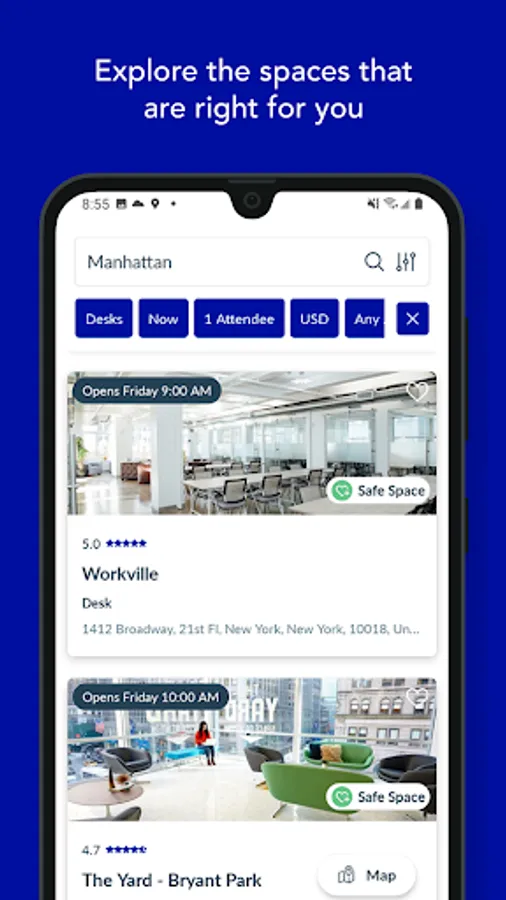 Optality is an intuitive mobile app where users can search and book workspaces anywhere, anytime.