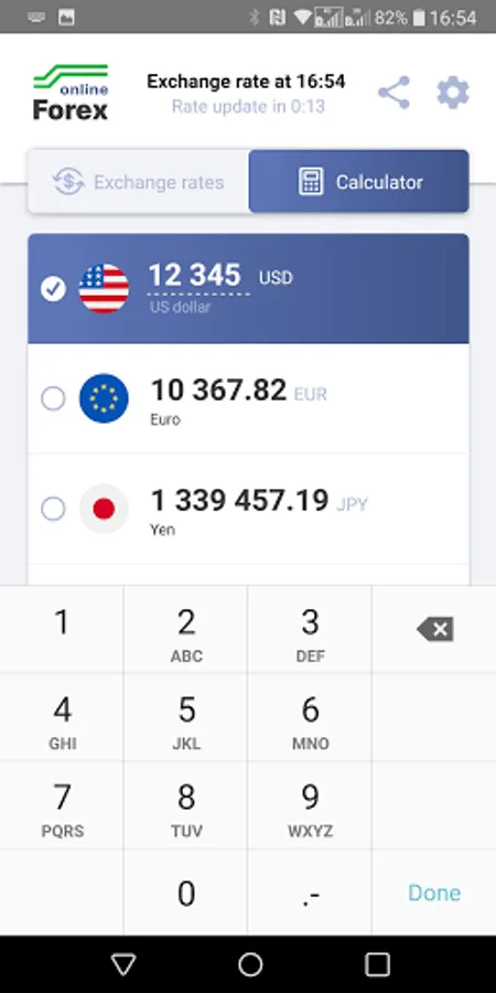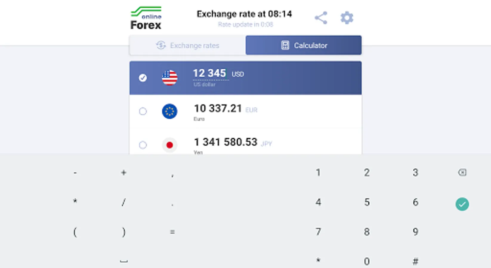 Currency conversion calculator with actual exchange rate.