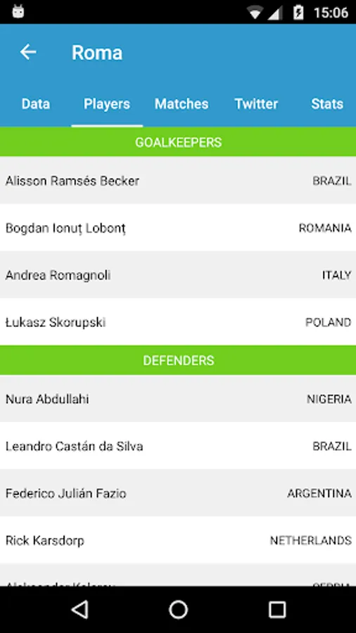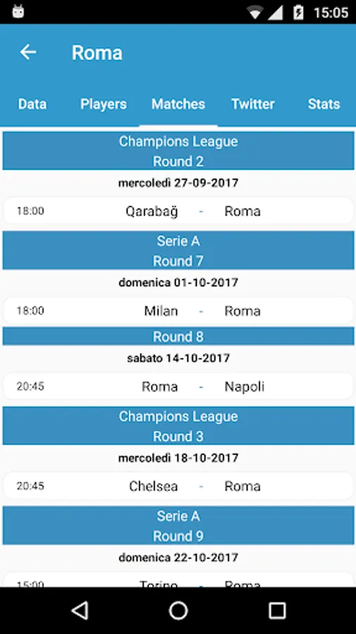 * Data: info about team, coach, venue, Twitter account and UEFA ranking.