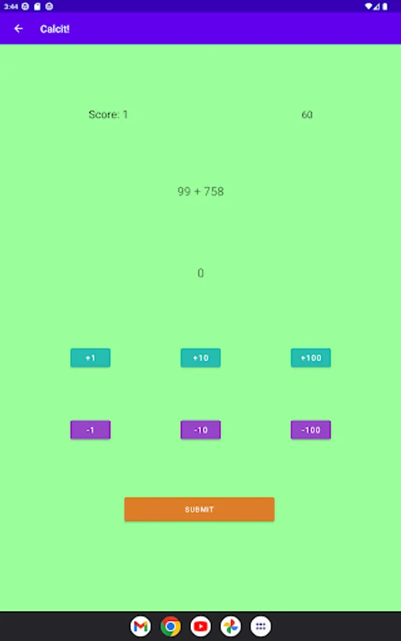 Calcit! is a great way to improve your mental math skills and challenge yourself to beat your own high score. You can also compete with friends and family to see who can score the highest.