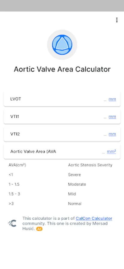 Aortic Valve Area Calculator Screenshots
