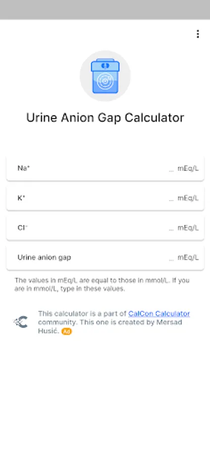 This calculator helps you estimate the urine anion gap based on sodium, potassium, and chloride levels measured in urine.