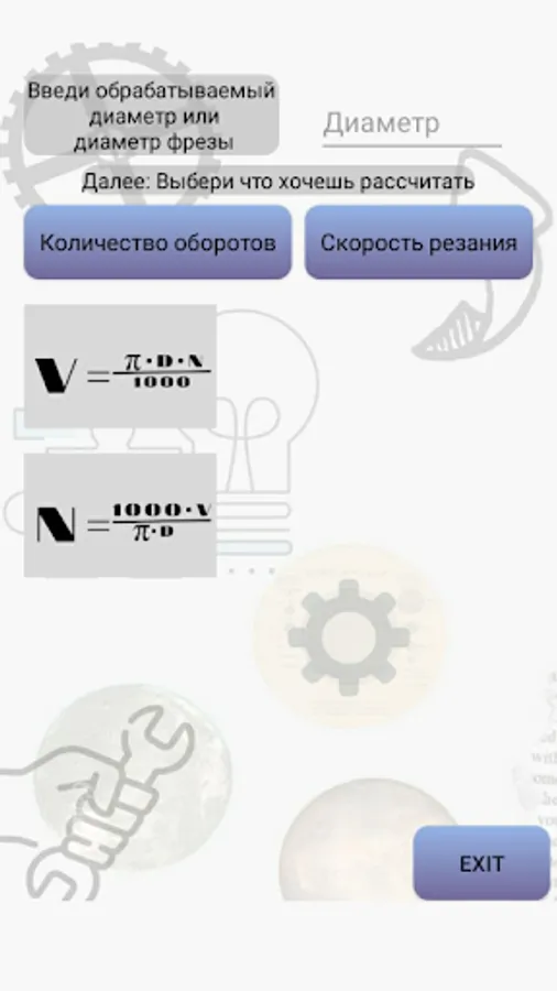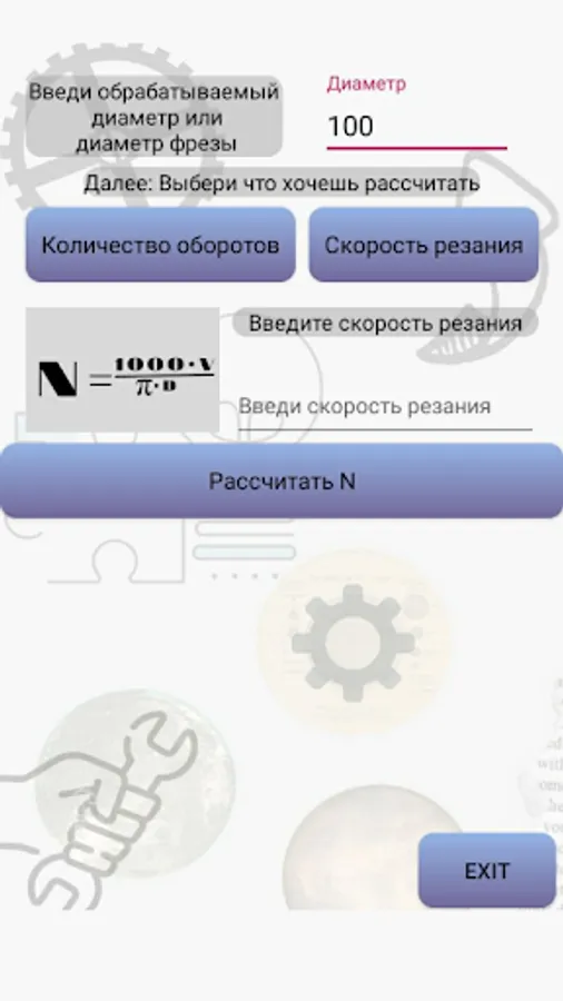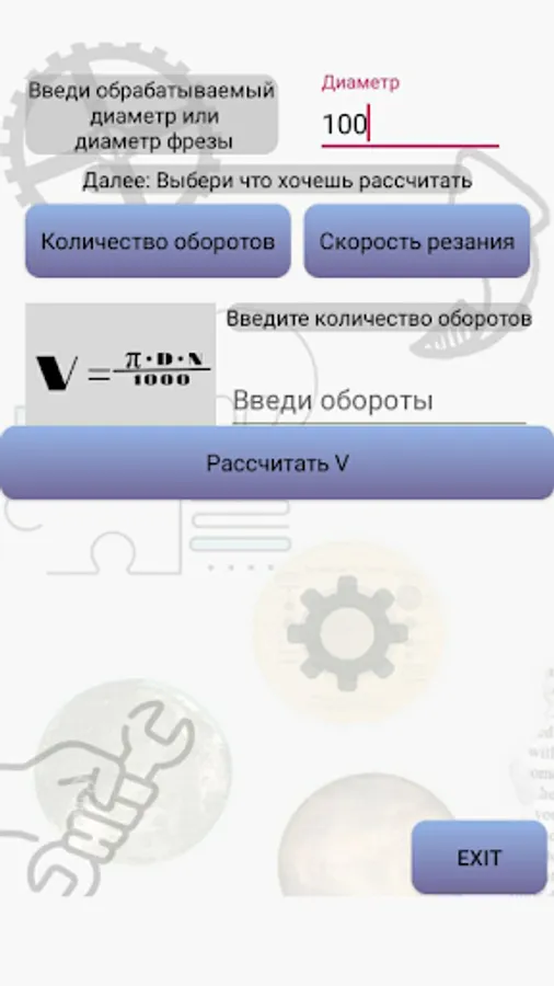 A simple calculator to calculate cutting speed or RPM. The calculator may be needed by a turner, miller, operator of machine tools with program control, to calculate and adjust cutting conditions.